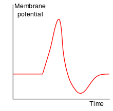 A neuron's ability to generate and propagate an action potential changes during development. How much the membrane potential of a neuron changes as the result of a current impulse is a function of the membrane input resistance. As a cell grows more channels are added to the membrane causing a decrease in input resistance. A mature neuron also undergoes shorter changes in membrane potential in response to synaptic currents. Neurons from a ferret lateral geniculate nucleus have a longer time constant and larger voltage deflection at P0 than they do at P30.[10] One consequence of the decreasing action potential duration is that the fidelity of the signal can be preserved in response to high frequency stimulation. Immature neurons are more prone to synaptic depression than potentiation after high frequency stimulation.[10]