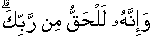 اوریہ [اُس زمانے کے حوالے سے وعدہ/اور اب انداز] آپ(ﷺ)کے رب کی جانب سے حقیقت ہے۔ |