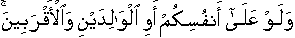 چاہے اس کا انجام خود تمہارے پر یا تمہارے والدین پر اورقریبی رشتہ داروں کے خلاف ہو۔ |