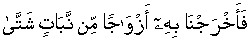 اس کے برس جانے پر ہم جناب نے اس کے الصاق سے زمین سےجوڑے نکال دئیے،انواع و اقسام کی نباتات کے۔ |