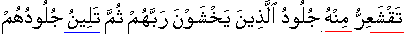 The skins of those who persistently fear and revere their Sustainer Lord become bristled in fear from some segment of it: Grand Qur'aan.