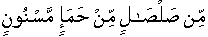 This was drawn from:  . It is Prepositional + Adjectival phrase relating to preceding Noun. signifies fetid muddy compound. It is modified, by the adjectival trait:    which is Passive Participle, Indefinite, Masculine, singular, genitive, relating to مصدر-سَنٌّ Verbal noun, from Root "س ن ن". This signifies rubbing-grinding something between two hard surfaces; over a stone slab with a stone. The pulverization of fetid muddy compound yields its softening, adhesion, homogeneity and diffusion of odor. In this process, the element that plays the major role is the water.