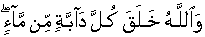 • Know it, Allah the Exalted has created each and all moving creatures [Animal Kingdom] from water. [Ref 24:45]