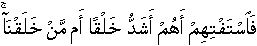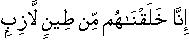 • [for comparison they should remember] Indeed We have created them corporeally from the tenacious clay - that acts as adhesive. [37:11]