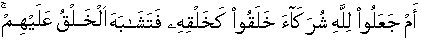 Or have they declared associates for Allah who have created like His creation for which reason that creation has created confusion for them? [it is sensitive for them, they will keep mum therefore]
