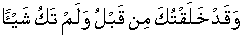 And the Mammals, He created them. [Refer 16:05] o And He created horses, mules and donkeys, so that you people can use them for ride/carriage and for show/attraction. And He creates others whom you people do not know. [16:08] And Allah has created you people, afterwards [lapse of your appointed duration of life] He alienates/segregates you people [from the company of others either dead or alive if murdered in His way/cause] [Refer 16:70] And they will be marshaled/assembled/presented towards your Sustainer Lord in a queue; [it shall be announced] "Indeed you people have come to Us [individually] as We had created you people for the first time". [Refer 18:48] o And [why not you consider before having asked] certainly I created you before this when you were nothing. [19:09] o Is it that the living man does not recall/remember this fact that We had created him earlier and he was nothing of the sort [which is mentioned/remembered] [19:67]