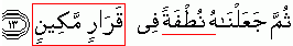 Afterwards We made him a sperm in firm/strengthening/resting/stationing place [epididymes]. [23:13]
