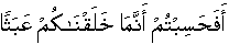 Afterwards/lapse of time We developed/raised him in to final/end creation. o Therefore Allah the Omnipresent, Perpetual, the Absolute is the Best Creator. [23:14] o Have you people then adjudged/made up your mind that We created you purposelessly and that for accountability you people were not to be presented towards Us. [23:115]