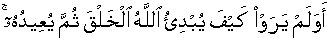 Do they not see/give it a thought how Allah initiates/originates the creation and afterwards He revives-takes it to logical conclusion. [Refer 29:19] You, the Messenger [Sal'lallaa'hoalaih'wa'salam] pronounce, "You people traverse in the world/land and then you people observe/watch how Allah did originate creation; afterwards Allah will create/raise the last raising. [Refer 29:20] Indeed He/Allah initiates the creation, afterwards He revives-takes it to logical conclusion, [Refer 30:11]