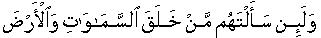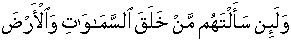 And If you ask them as to who created the Skies and the Earth o they will certainly answer "Allah, the Dominant, All Pervasive; the Knowledgeable has created them" [43:09]