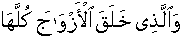 o Infinitely Glorious is the One Who created the pairs, all of them in whatever is sprouted from the Earth [Plant Kingdom] and in their own selves and in the [creatures, moving and still] ones they do not have the knowledge about. [36:36]