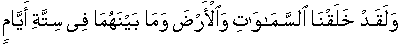 Do you people create him/that particular single sperm? or We are the Creator? [56:59] He [Allah] is The One Who innovatively created the Skies and the Earth in a time duration of six days [time reckoned in outside this/your universe]; [57:04] He/Ar'Reh'maan is Allah-The Original Creator, The Extractor, The Creator of Dimensions/Shape/ Manifestations. [59:24]