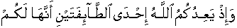 48:29] It is the promise of Allah, as self imposed obligation with those who accepted/believed and performed deeds/acts righteously/moderately [as directed in the Book of Allah prevalent in time and space] [5:09] And when Allah promised to you people that one of the two groups is for you [to be dominant upon]. [8:07] The promise of Allah for Munafiqeen men and Munafiqat women and those who persistently refused to accept/believe is the scorching heat of Hell-Prison wherein they shall reside permanently. [Refer 9:68] Allah has promised for the believing men and the believing women [Refer 9:72] [Same pronouncement in same words in