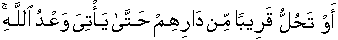 or that disaster may liquefy/settle nearby their locality until the time of arrival of Allah's promise. [13:31]