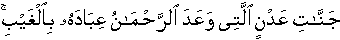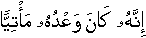 And this is how We made it [mystery of missing youth] known to people [of that era] so that they may convincingly understand that the [resurrection] Promise of Allah is a fact; [18:21] o Gardens of Eden, Paradise, Ar'Reh'maan has promised His bondmen/persons of His group without that being in their sight [though it has been made familiar to them]. Indeed it is His promise that is surely to accomplish. [19:61] And they seek you, the Messenger [Sal'lallaa'hoalaih'wa'salam], for hastening the Doom/the infliction; [ask them to wait a little while] And Allah never fail to fulfill His promise. [22:47]