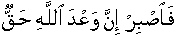 40:55;40:77] Therefore, remain coolly perseverant, indeed the promise of Allah [regarding Last Day] is a fact, [30:60] [Same pronouncement in same words in