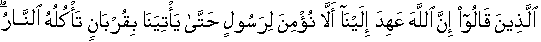 [Read with 2:174] Indeed those people who earn their livelihood/make it a profession/business with the promise of Allah [that they will distinctly explain His Aa'ya'at to people but they conceal with their conjectural stories/myths] and their own oaths, [Refer 3:77] [With untrue and conjectural myths they ridicule and mock] Those who said: "Indeed Allah has taken our promise not to believe in the Messenger till such time he brings to us an offering which the fire may devour.'' [3:183] and you people fulfill/discharge your promise/commitment made with Allah. [6:152] [Read with