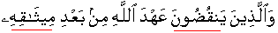 And those who break/distort/disown Allah's covenant after it had become binding; [13:25] And you people fulfill/discharge your Promise/Covenant with Allah when you committed/undertook it ["We have listened and we have wholeheartedly accepted it-Grand Qur'aan"]; and you people should not break/distort/disown the oaths after its confirmation. [16:91] and you people [learned men/scholars/religious elite] should not indulge in business with Allah's Covenant [revealed verses; with conjectural stories suited to the desires of people] for a trifling price/gain. [16:95]