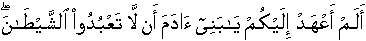 From amongst the believers are men who exhibited/exposed/proved truthful to that which they had promised to Allah. [33:23] had I not enjoined upon you people, O you the posterity of Adam, that you must not be allegiant to the Shai'taan; [36:60]