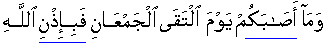 And what you people suffered on the day the two armies had met, that was for reason of [your grave strategic omission] prior permission of Allah, [Refer 3:166] And We did not send a single Messenger except that indeed his word be accepted with the permission of Allah, [Refer 4:64] and He moves them out of the depths of darkness into the visible light [with the Book/Grand Qur'aan since sent] with His permission/approval. [Refer 5:16]
