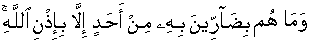 though he can never harm them even the least except with the prior tacit approval of Allah. [Refer 58:10]