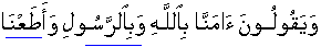 And they proclaim, "We have believed in Allah and the Messenger [Sal'lallaa'hoalaih'wa'salam] and We have affectionately and wholeheartedly accepted the word"