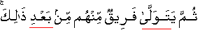Afterwards a group from them turned away from this proclamation. o And they are certainly not the believers. [24:47] [Read with
