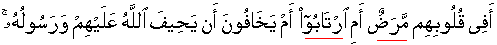 Is there a disease/personality disorder in their hearts? Or are they perplexed? Or are they apprehensive that Allah will be biased against them and His Messenger.