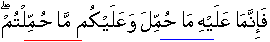 94:02] [it makes no difference for him] since/then upon him is only that burden which is assigned to him and upon you people is that burden of responsibility which is laden upon you people. And if you people affectionately accept his word [recited by him from Qur'aan word by word] you will be guided [to destination of perpetual success]. [Same pronouncement in same words in