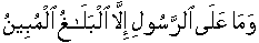29:18]o [Assignment/responsibility of Messenger pronounced in 3:20;5:67,:92,99;13:40;16:35,82;24:54;29:18;36:17;42:48;64:12;72:23,28] And upon the Messenger there is no responsibility except to deliver/convey/pass on the message [to your ears and hands, orally and in writing; and to take it to your heart and brain is your own burden] [24:54]