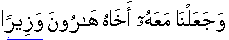 2:87;23:49;28:43;32:23;41:45] And most certainly We had given Musa [alai'his'slaam] the Book, o And We appointed along with him his brother Haroon [alai'his'slaam] as assignment sharer. [25:35]