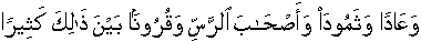 And civilizations of Aad and Samued and Companions of Ar-Rass and many generations/habitations in between that. [25:38]