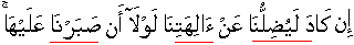 Indeed he had almost made us forgetful and stray from our various iela'aha had we not remained determined and steadfast upon them" And soon shall they know/realize when they see the affliction as to who is comparatively more unmindful/neglectful/astray of way. [25:42] [Same information in
