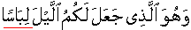 78:10] And He, the Exalted is the One Who has made/prescribed/appointed for you people the night as/like wrapper/garment [source of comfort/seclusion from others] and the sleep as a source/cause of rest/restraint to free action; and He appointed the Day for revival/scattering. [25:47]