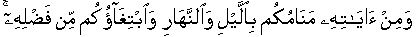 And from His demonstrative signs are your sleeps in the Night and the Day and your seeking partly from His Bounty. [Same pronouncement in same words in
