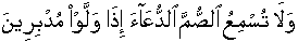 It is true that you, the Messenger [Sal'lallaa'hoalaih'wa'salam] cannot make the dead persons listen you and neither you can make the deaf men listen/comprehend the call/word the moment they reflexively transformed turning away on their backs [a deaf man can be made to "listen and learn" if he is confronting/watching eye to eye but not when he has turned on his back-Qur'aan disclosed in 7th Century that Deaf have the capability to "listen, learn and get educated". But, according to Encyclopedia Encarta, until the Middle Ages, most people believed that deaf persons were incapable of learning language or of being educated in any way. By the 16th century, however, a few philosophers and educators began to reconsider the condition of deaf persons]. [30:52]