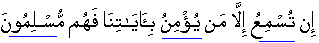 27:81]o You cannot cause a man listen in mind except the one who believes in Our Aa'ya'at [of the Book and demonstrative physical signs spread all over the Universe] whereupon they act as Muslims, those who physically demonstrate submission to the fact of believing by following the prescribed Code and Procedure of Life-Islam. [30:53]