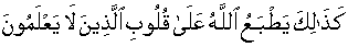 o And if you, the Messenger [Muhammad Sal'lallaa'hoalaih'wa'salam] had brought to them an unprecedented demonstrative sign certainly those people/ruling elite who have refused to accept would say to others, "you people are but falsifier vain talkers" [30:58] This is how [eventually] Allah lets the veil persist upon the hearts of those who do not intend to know. [30:59]