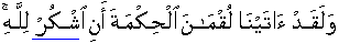 And indeed We had granted wisdom/insight to understand and perceive infolded realities to Looq'maan that, "you be obliged and express gratitude for Allah". [Same pronouncement in
