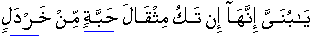 [Reverting to Loo'maan's advisory session] "O my son! it is a fact that if there be a small thing like the grain/seed from a mustard plant
