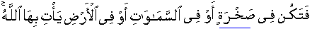whereby it may be in a rock or in the Skies or in the Earth Allah will bring it forth