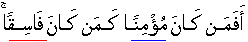 Is then the one who had persistently been a believer like the one who persistently remained a transgressor/who went out of the prescribed bounds?