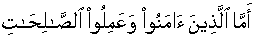 As for those who accepted/believed and performed deeds/acts righteously/moderately [as per Book],