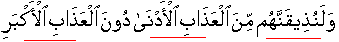 30:41] And certainly We will let them taste the lighter punishment/suffering prior to the greater torment,