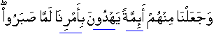21:73] And We had made/declared from among them Guides who guided people with Our Command/Book when they remained steadfast coolly perseverant.