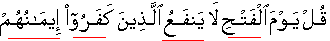 6:158] You the Messenger [Sal'lallaa'hoalaih'wa'salam] pronounce, "On the Decision's Day accepting and believing will not benefit those who had earlier persistently refused to believe/accept o and nor they shall have a moment of wait/relief/reprieve. [32:29]