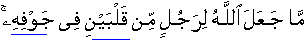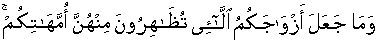 and nor has He declared your wives as your mothers some of whom you at your own declare ineligible as if they are your mothers; and nor has He declared your so called sons as your sons,