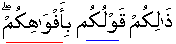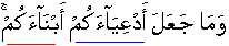 these are oral utterances of you people merely with your mouths [void of truth/reality]; o and Allah says only a proven and established fact and He/that statement of solid fact guides to the Path [as against contrary to proven fact oral emotional vacuum statements]. [33:04] You people call them by their fathers, that is most appropriate and balanced conduct in the judgment of Allah;