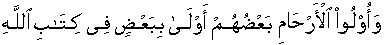 8:75] And [in worldly matters] the holders of womb relationship, some of them are comparatively nearer [like parents] than some others in the Book of Allah
