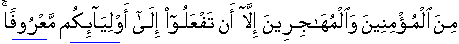 from amongst the believers and emigrants except that you conduct towards your companions in a decent recognized manner. o This is that which is recorded in writing in the Book. [33:06]